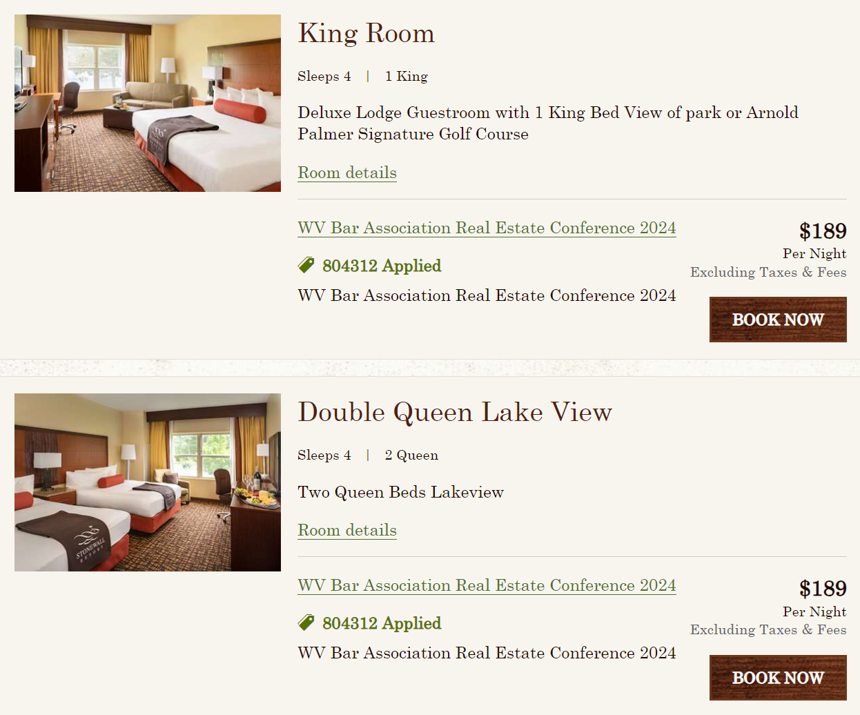 Enhance your experience by booking reduced-price accommodations at Stonewall Resort starting at just $189 per room, per night. Reservations must be booked by April 12, 2024 to redeem this discounted rate. Click the brown "Book Now" to take advange of this exceptional overnight rate. Should you have any issues booking your reservation within our reserved room block, please contact the Stonewall Resort reservations team at 304-269-7400.